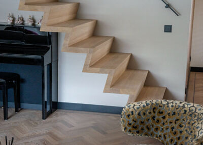 Onze zwevende Z-trappen combineren elegant design met vakmanschap. Door de treden los van de muur te monteren, ontstaat een luchtige en open uitstraling die iedere woning een moderne touch geeft. Op deze pagina vind je voorbeelden van gerealiseerde projecten met diverse houtsoorten, afwerkingen en leuningsopties.