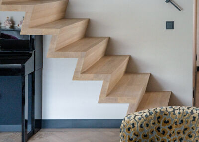 Op deze pagina zie je een selectie van onze zwevende Z-trappen, elk uniek in stijl, materiaal en afwerking. Van lichte eikenhouten treden tot donkere walnootvarianten, met glazen balustrades of strakke leuningen: de mogelijkheden zijn eindeloos. Elk project is maatwerk en afgestemd op het interieur en de woonwens van de klant.