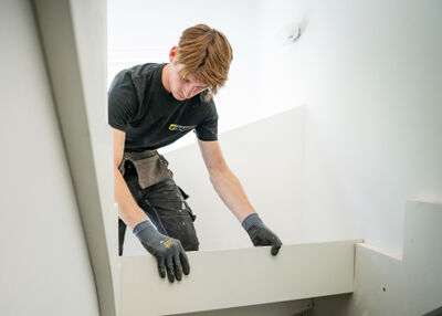De Z-trap specialisten van Brabant Trappen zorgen we niet alleen voor de perfecte trap, maar ook dat deze jarenlang mooi blijft. Onze onderhoudsspecialist kan beschadigingen aan Z-trappen, bloktrappen of andere trapsoorten vakkundig herstellen. Of het nu gaat om het wegwerken van krassen, scheurtjes of kleurverschillen, het opnieuw afwerken van het hout, of andere reparaties – wij zorgen dat je trap er weer als nieuw uitziet.